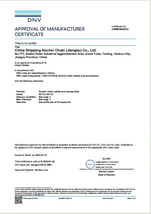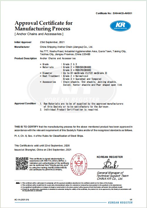 率先開發M4級錨鏈、 R7/R8級系泊鏈,打造完整而先進的產品體系。