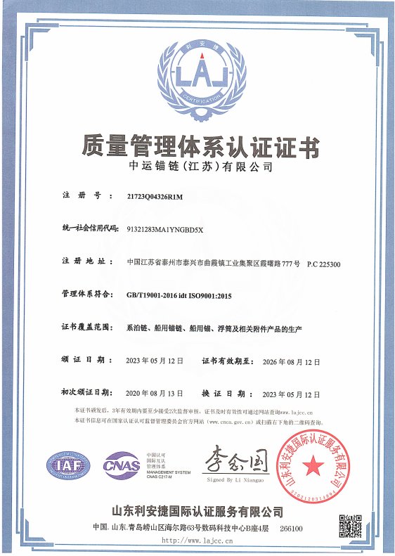 中運錨鏈(江蘇)有限公司